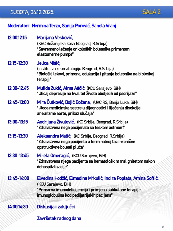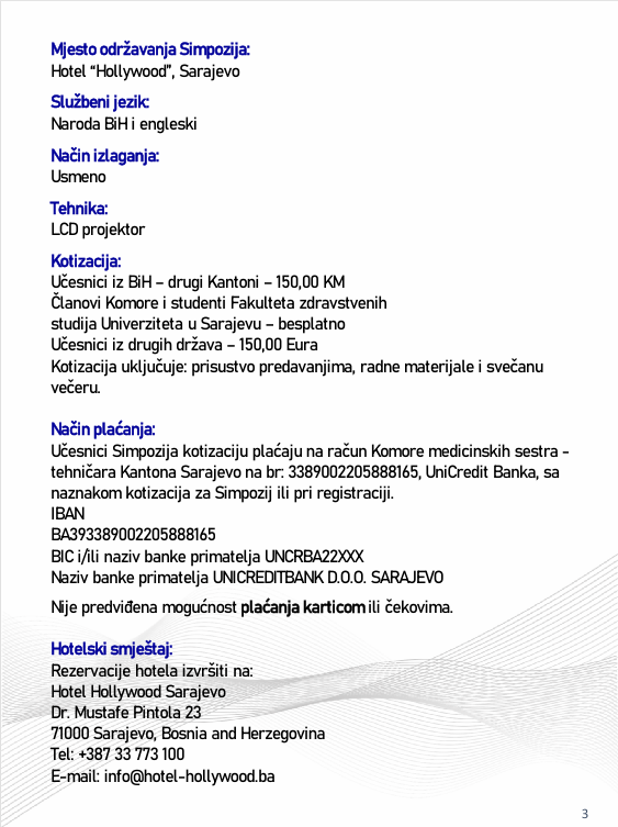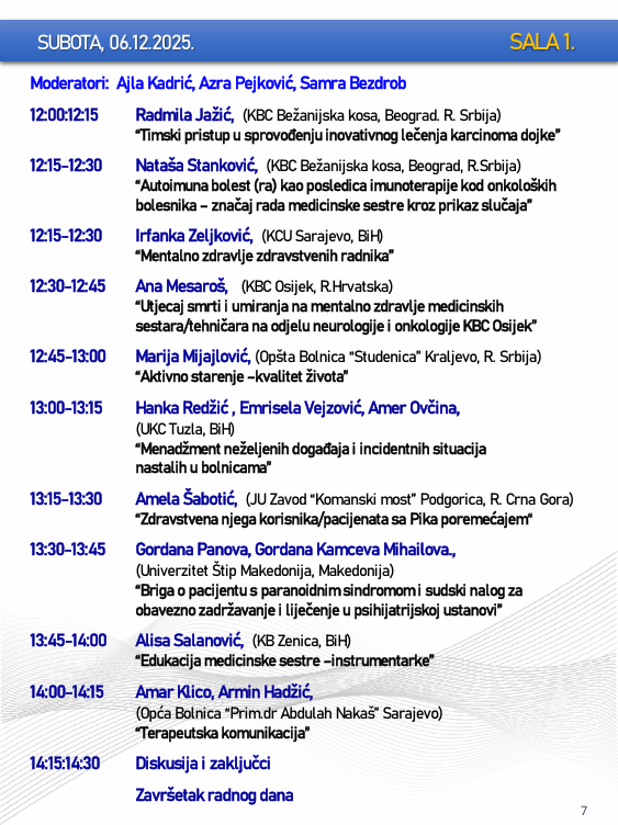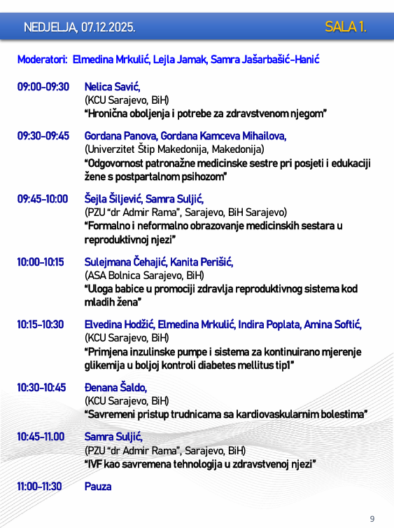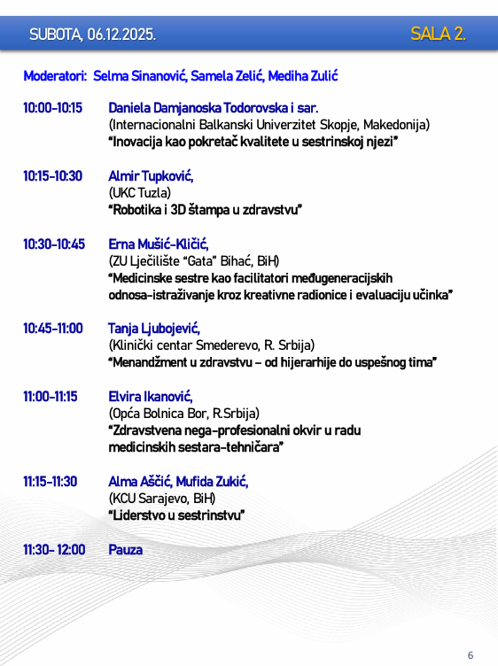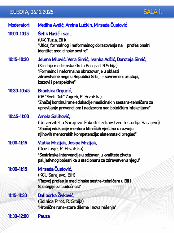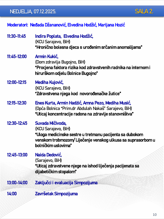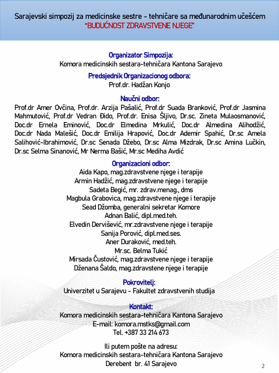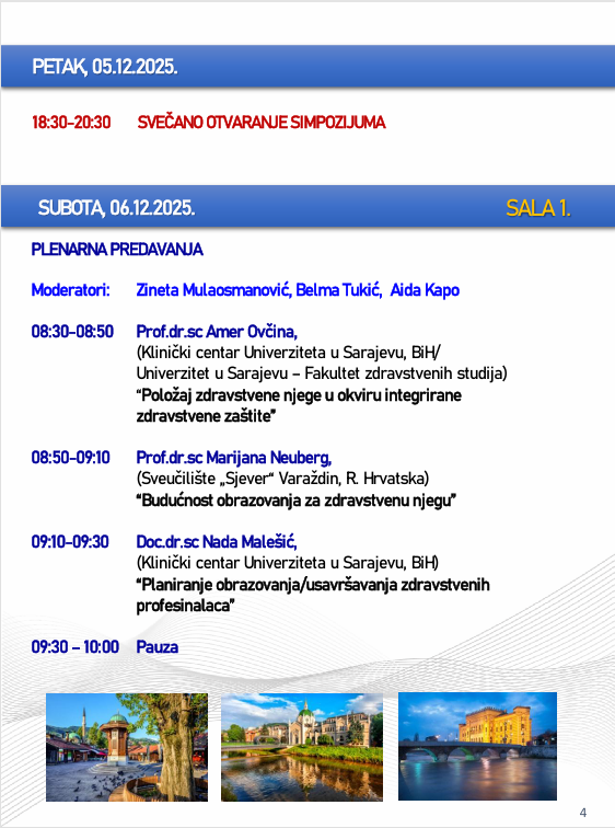 Naslovna • Novosti • Obavijesti PROGRAM – Sarajevski simpozij za medicinske sestre-tehničare sa međunarodnim učešćem “Budućnost zdravstvene njege”